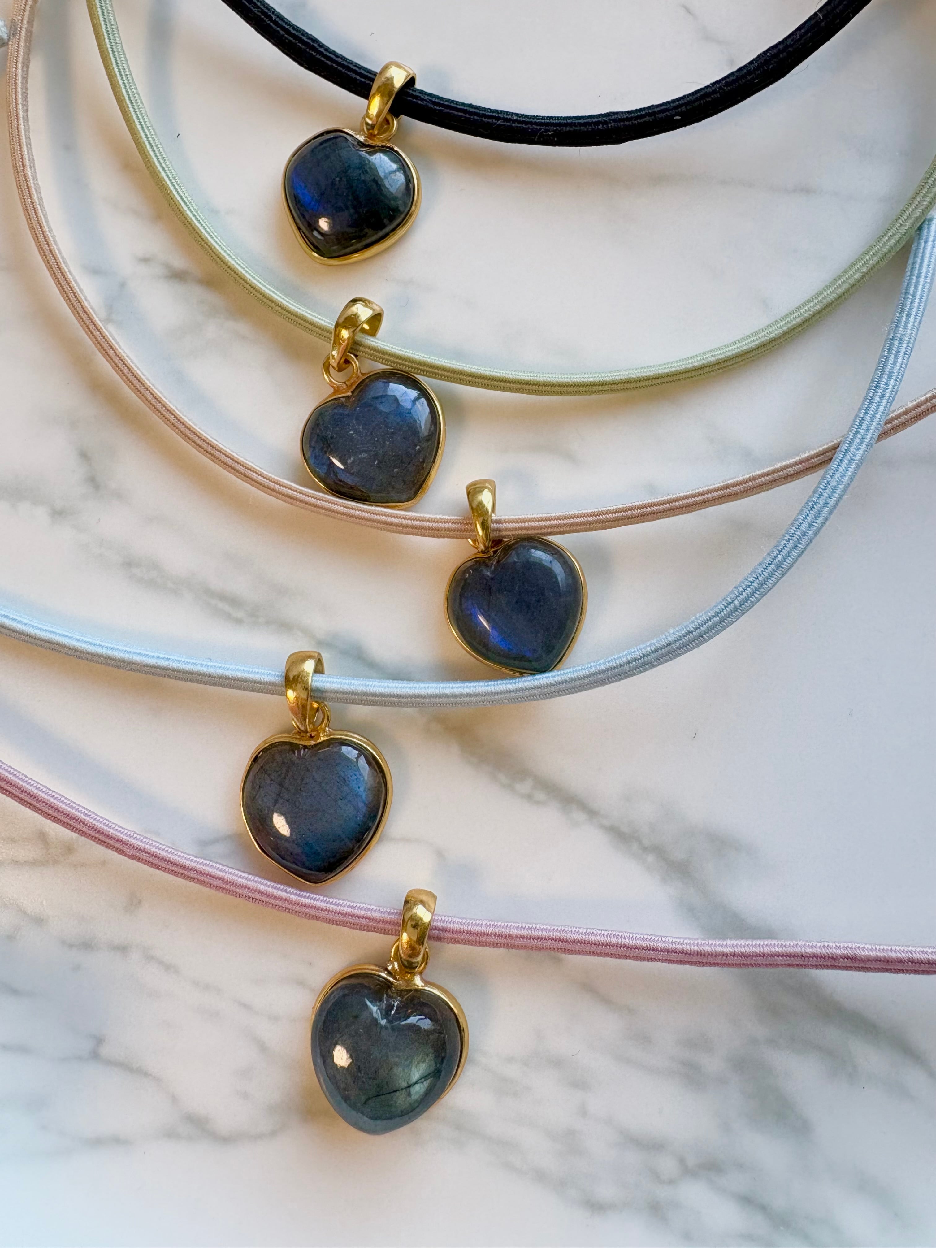 "マダガスカル産"Heart labradorite hair accessory(誕生石が選べるハートラブラドライトヘアゴム)