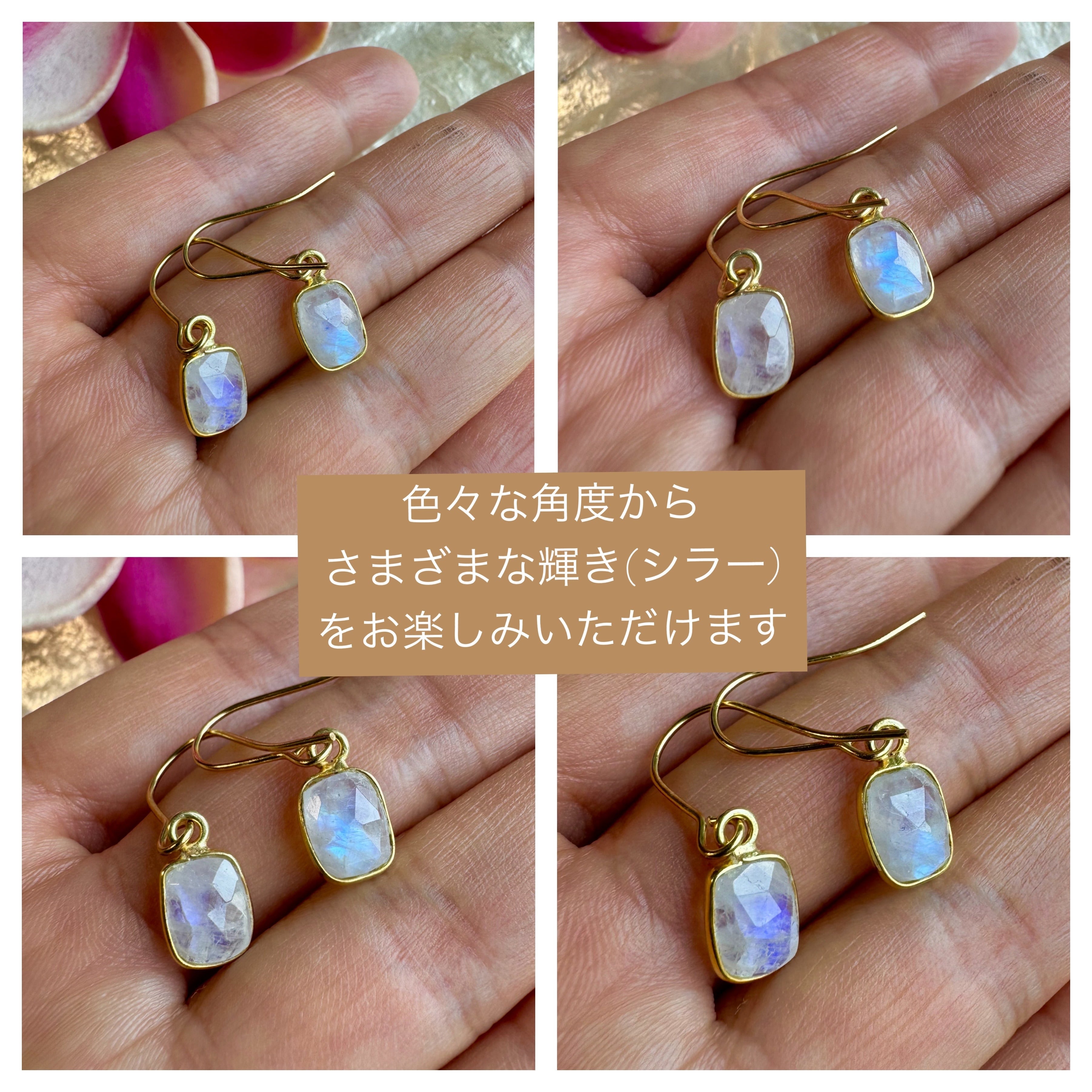 Natural Rainbow Moonstone earrings(天然石レインボームーンストーンピアス、イヤリング)
