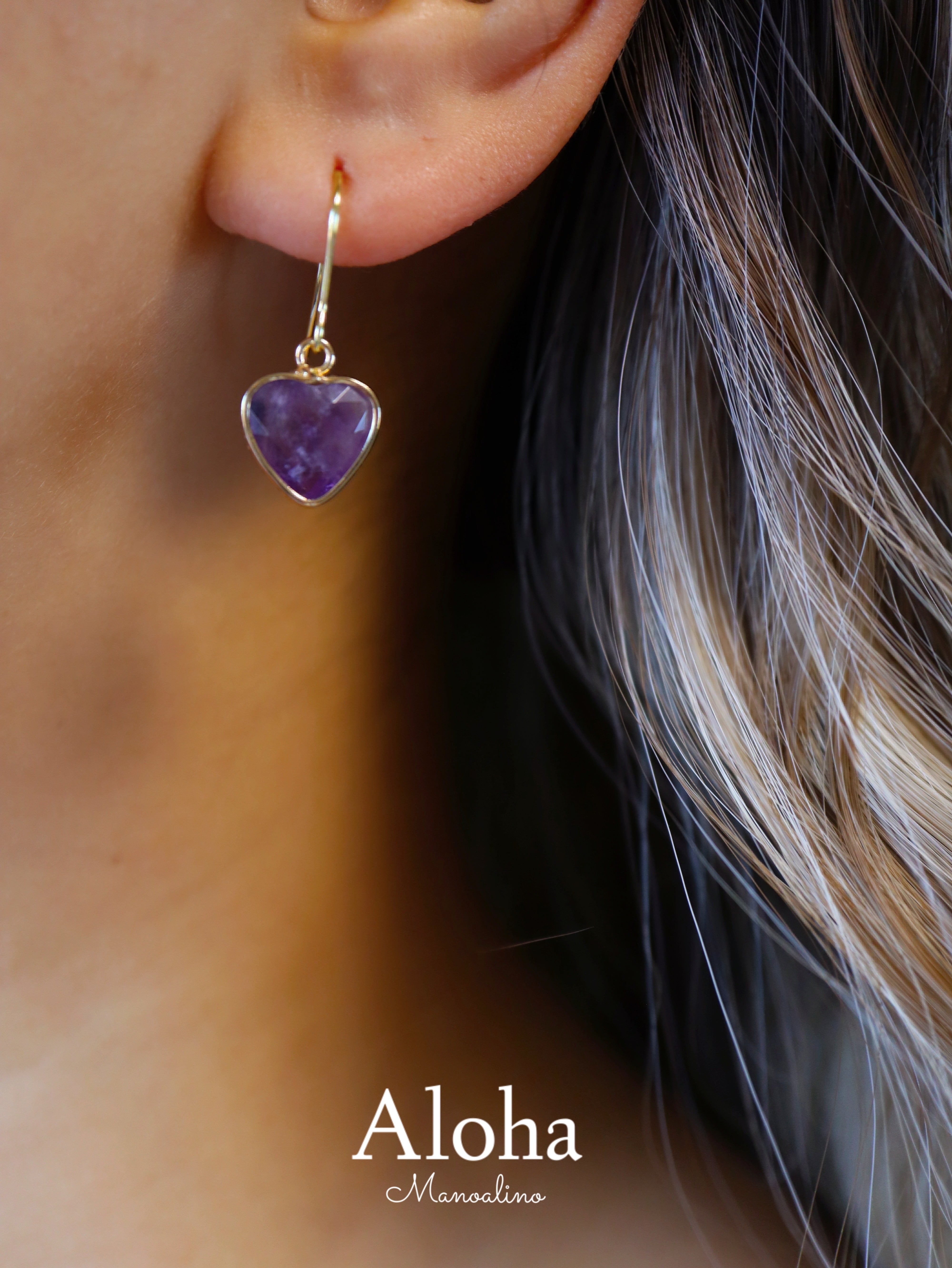 Pu'uwai heart Amethyst earring(ハートアメジストピアス、イヤリング)