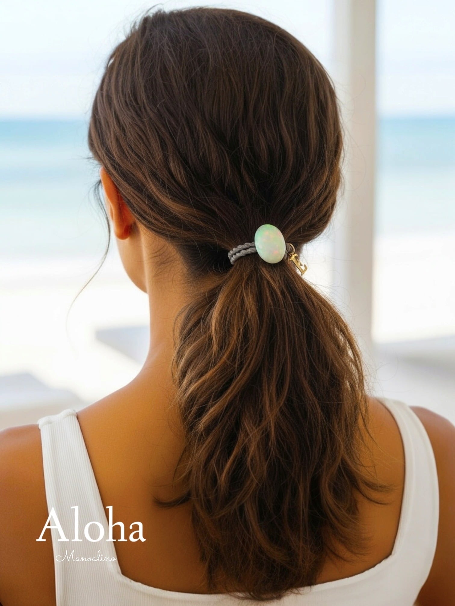 ”オーストラリア産”AAArank opal Opalite hair accessory(AAAランクオパール天然石ヘアゴム)