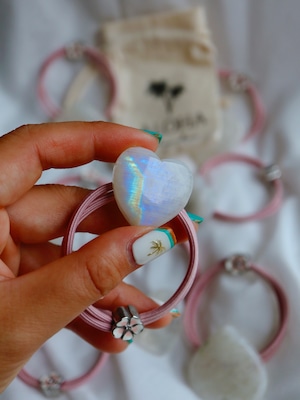 ”ランクなし”Pu'uwai Heart Rainbow moon stone hair accessory(ハートレインボームーンストーンヘアゴム)
