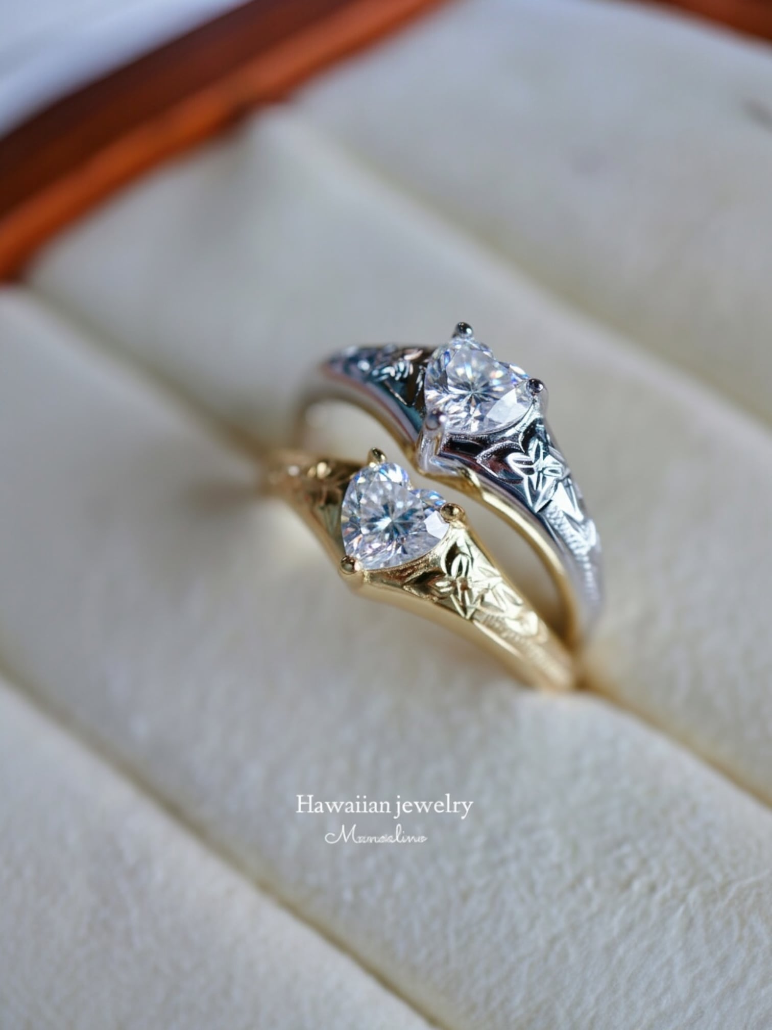 【手彫り】AAAAA rank Heart zirconia ring Hawaiian jewelry(AAAAAランクハートジルコニアリング、指輪ハワイアンジュエリー)