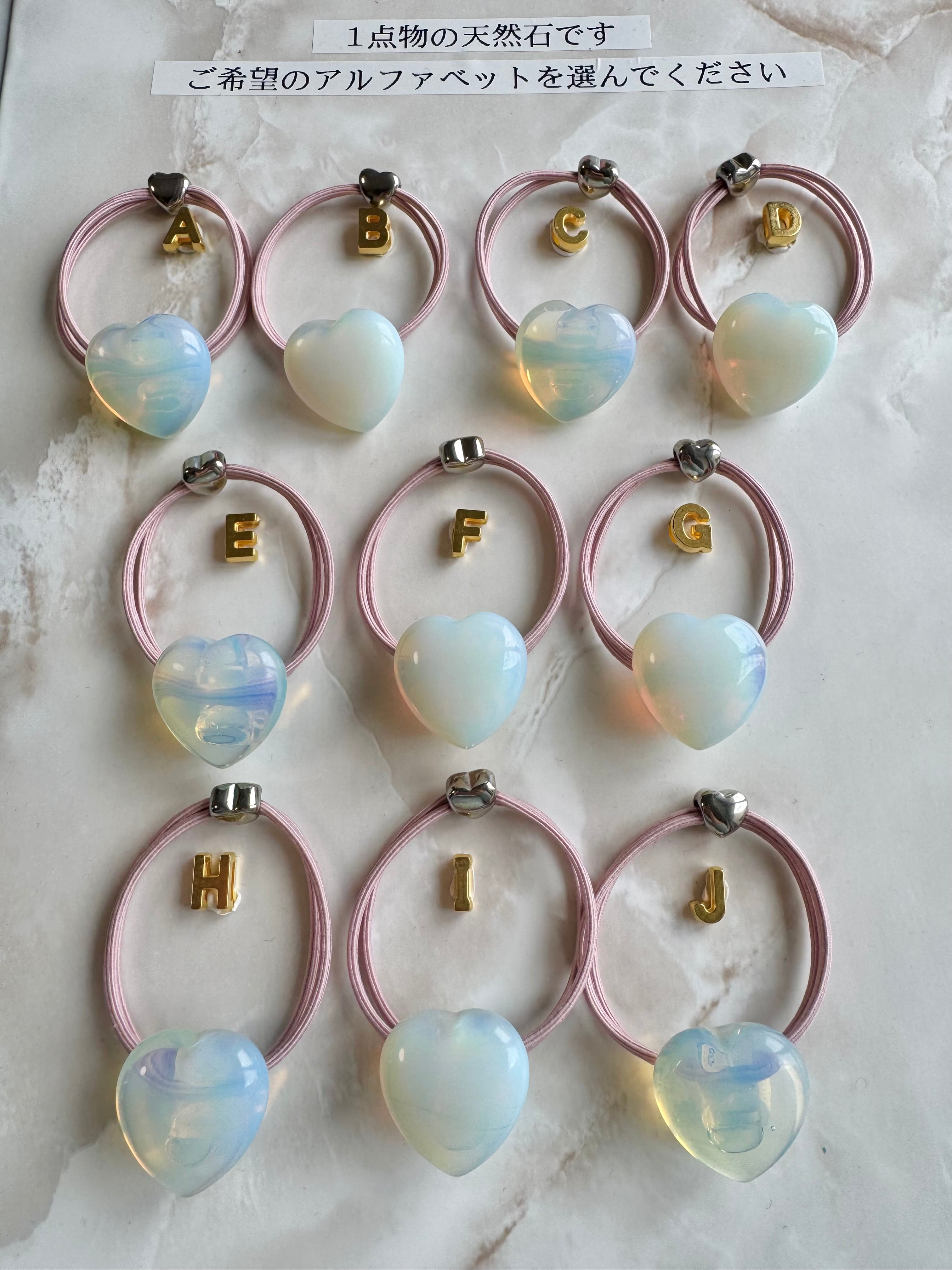 Pu'uwai heart Opalite hair accessory(ぷっくりハートオパライト天然石ヘアゴム)